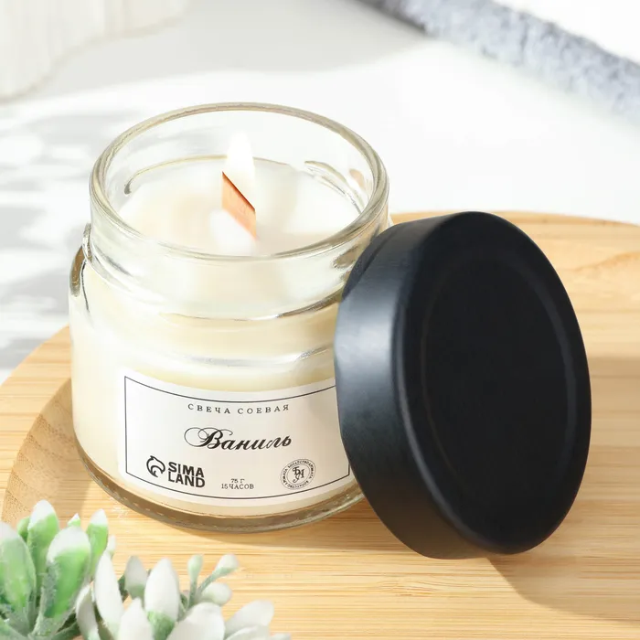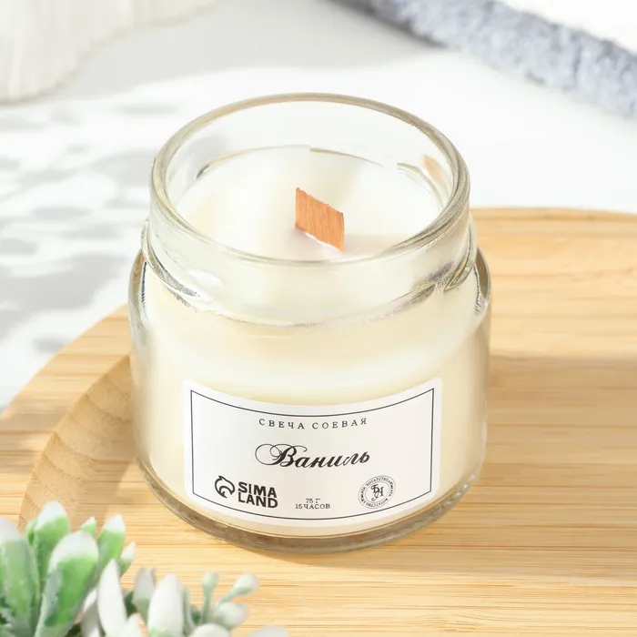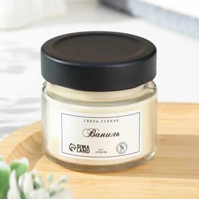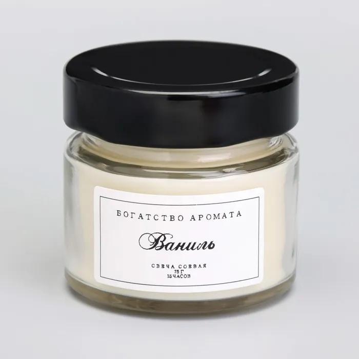 Ароматическая свеча в банке, 75 г, из соевого воска, ваниль — Характеристики