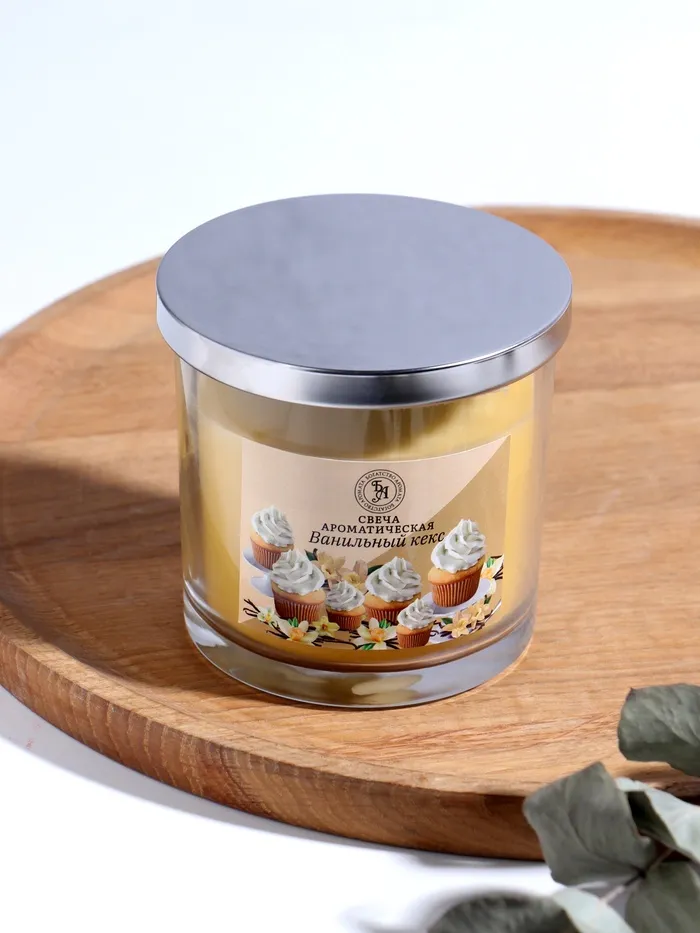 Свеча ГИГАНТ ароматическая в стакане "Ванильный кекс", соевый воск, 10х10 см