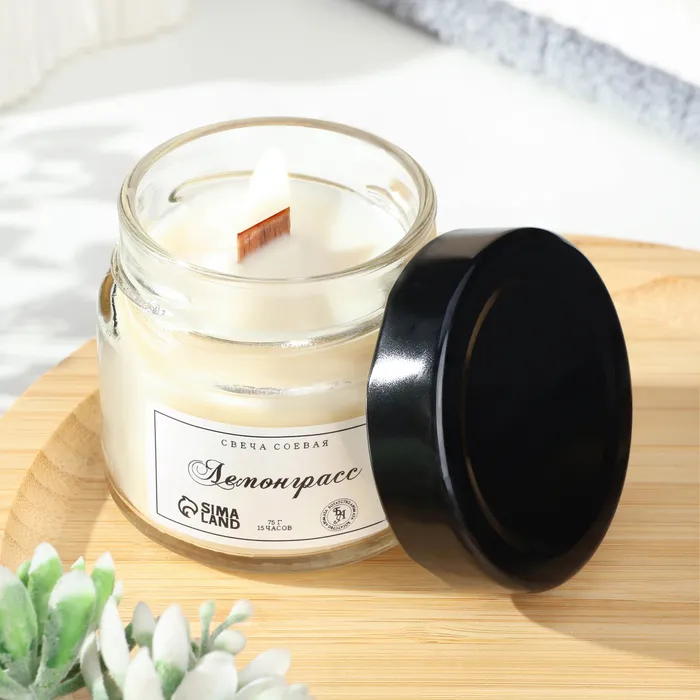 Свеча выполнена из натурального соевого воска, поэтому горит плавно и равномерно. От неё значительно меньше дыма и копоти по сравнению с изделиями из парафина. Деревянный фитиль приятно потрескивает при горении, напоминая звуки небольшого костра.