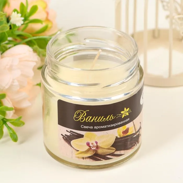 Погрузитесь в атмосферу уюта с этой изысканной свечой в стеклянной банке, наполняющей пространство нежным ванильным шлейфом. Её тёплый, слегка сладковатый аромат создаёт ощущение домашнего комфорта, превращая обычный вечер в момент наслаждения.