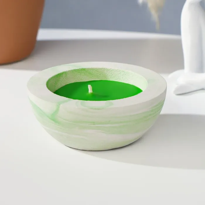Ароматическая свеча в подсвечнике из бетона «Полусфера», 9×4 см, зелёный, мята — Характеристики