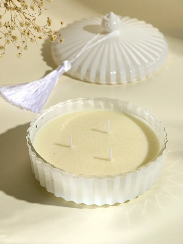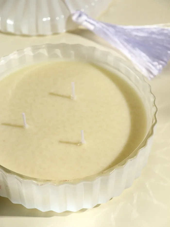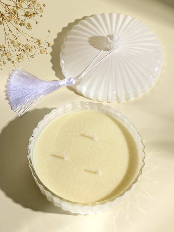 - Длительное горение: три фитиля обеспечивают ровное пламя и время горения до 30 часов, что делает свечу практичным выбором.