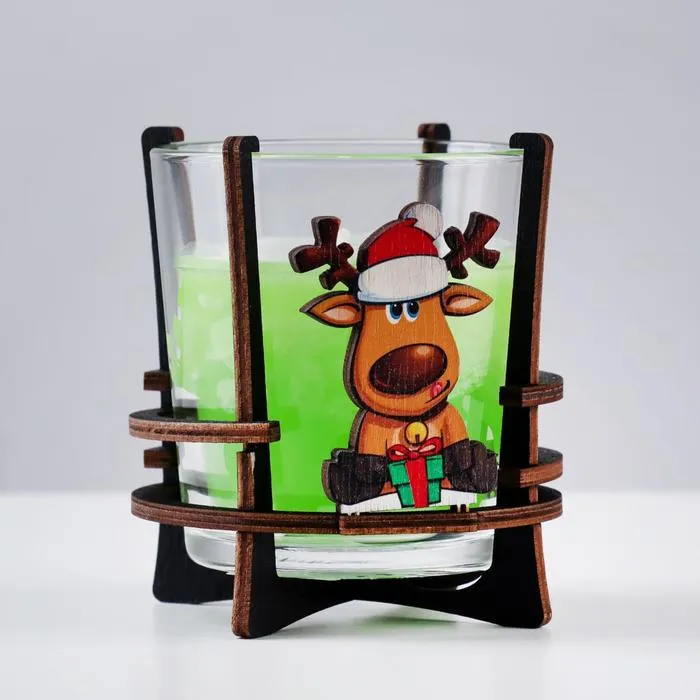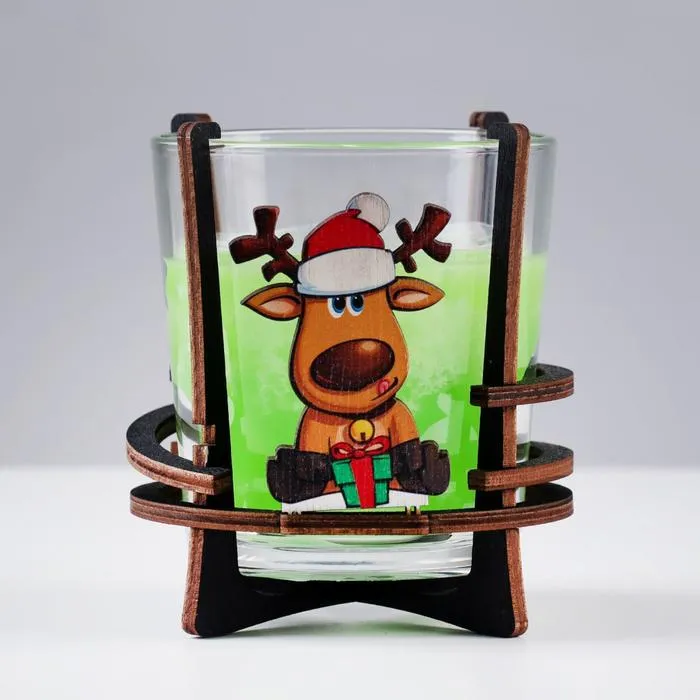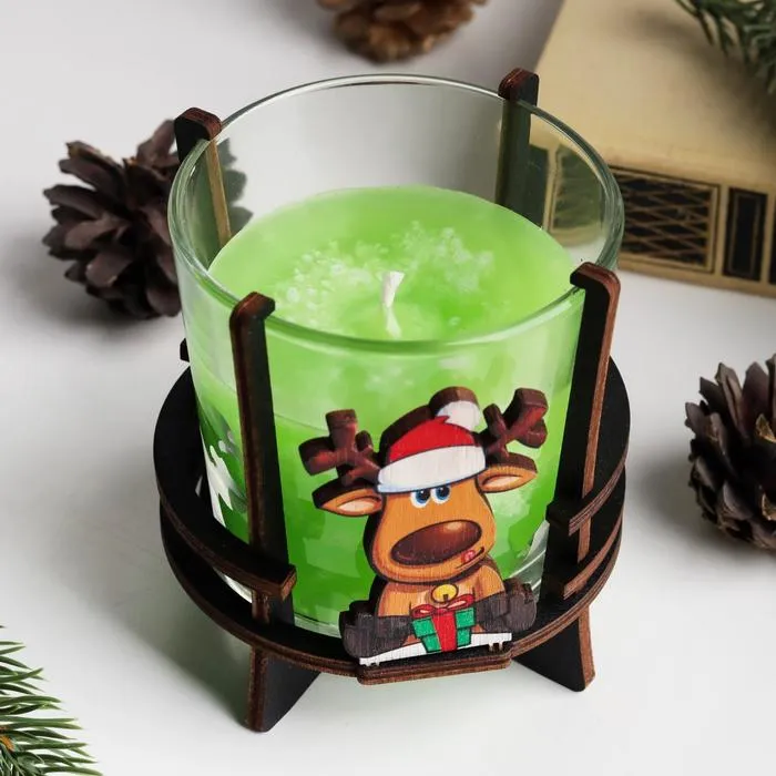 Ароматическая свеча в стакане на подставке «Новогодний олень», 10×9.5×9 см, яблоко — Характеристики