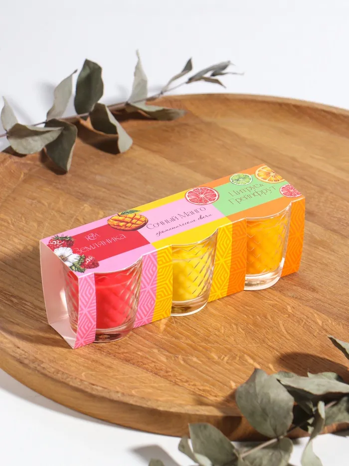 Откройте для себя мир ярких ароматов с набором свечей, которые подарят вашему дому атмосферу праздника и уюта. Эти свечи в стакане, наполненные свежими нотами земляники, манго и цитрусов, не только создадут неповторимую атмосферу, но и станут стильным акцентом в вашем интерьере.