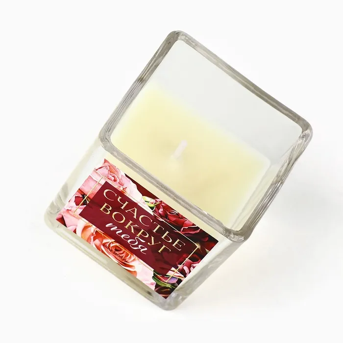 Ароматическая свеча в стакане SEE YOU HOME «Счастье вокруг тебя», малина, 5.3×5.3×5.5 см — Характеристики