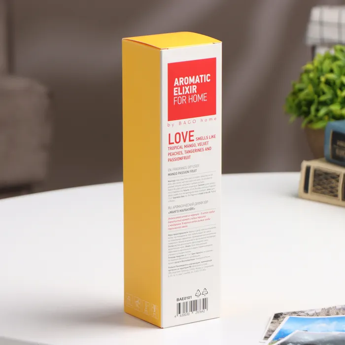 Ароматический диффузор "Манго маракуйя" от BAGO home предлагает экзотическое путешествие благодаря своему уникальному фруктовому ассорти. С ярким и живым дизайном, этот диффузор объемом 25 мл обеспечивает до 4 недель устойчивого ароматизирования пространства площадью до 15 м². В комплекте поставляются 6 желтых фибровых палочек, позволяющих настроить интенсивность аромата.