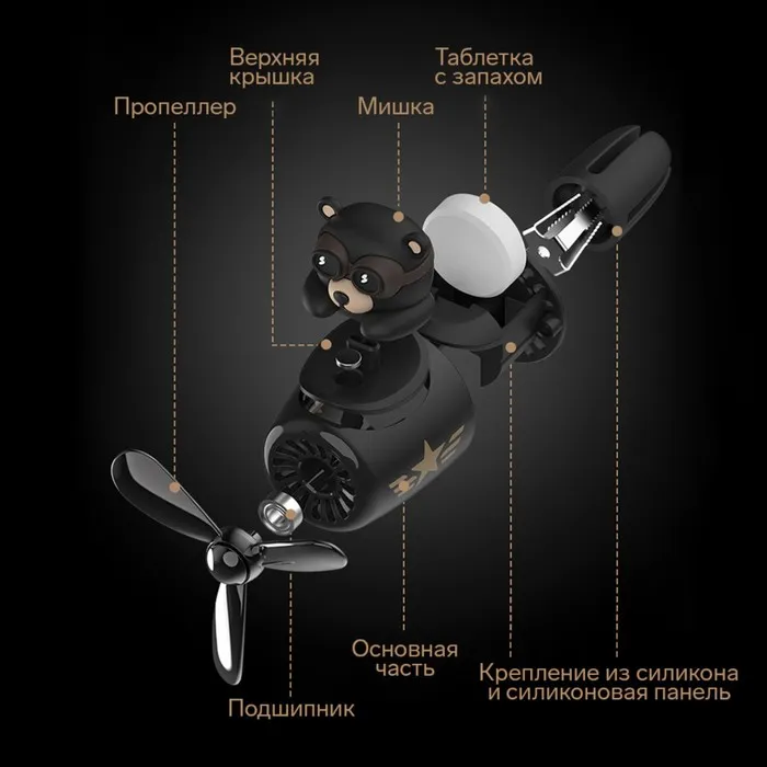 Ароматизатор для автомобиля в воздуховод, Мишка пилот, 5 ароматов — Характеристики