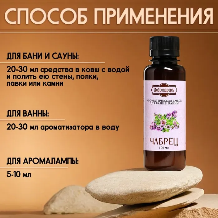 Ароматизатор для бани и ванны «Чабрец», натуральная, 100 мл, "Добропаровъ" — Характеристики