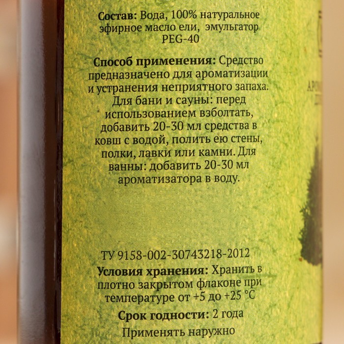 Ароматизатор для бани и ванны «Ель», натуральная, 250 мл., "Добропаровъ" — Характеристики