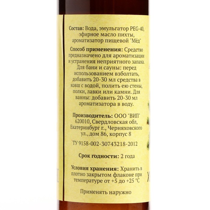 Ароматизатор для бани и ванны "Хвойно-медовый" 100 мл — Характеристики