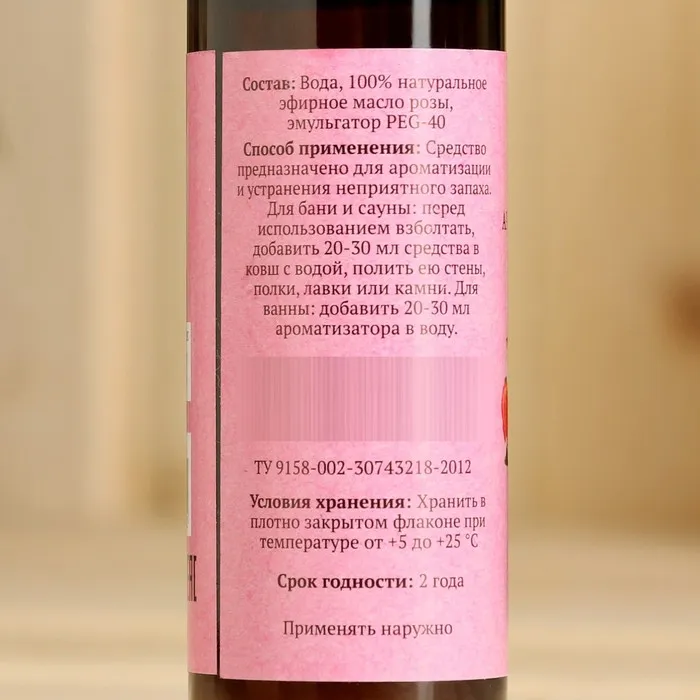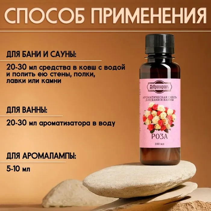 Ароматизатор для бани и ванны "Роза" натуральная, 100 мл "Добропаровъ" — Характеристики
