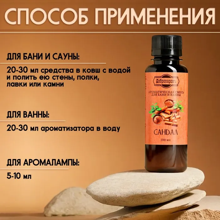 Ароматизатор для бани и ванны "Сандал" натуральная, 100 мл "Добропаровъ" — Характеристики