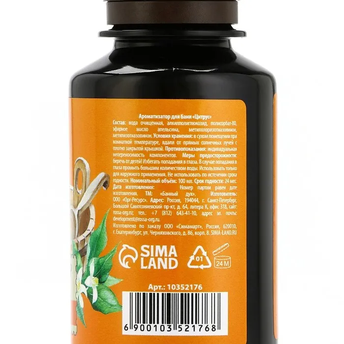 Ароматизатор для бани «Цитрус», 100 мл, аромат цитруса, БАННЫЙ ДУХ — Характеристики