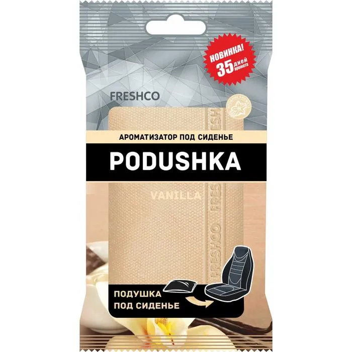 Ароматизатор под сиденье “Vkusno Podushka” с ароматом ванили подарит вам и вашим пассажирам ощущение уюта и комфорта во время поездки. Он предназначен для установки под сиденье автомобиля, что позволяет аромату равномерно распространяться по всему салону.