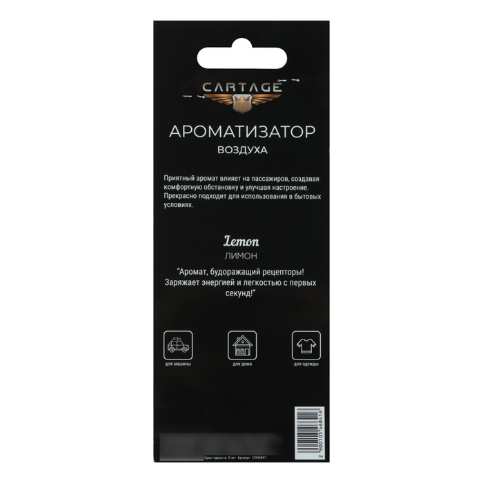 Картонный корпус ароматизатора подчеркивает его легкость и удобство в использовании. Просто повесьте его в удобном для вас месте, например, на зеркале заднего вида в автомобиле или в шкафу, и наслаждайтесь непревзойденным ароматом "Лимон", который создаст атмосферу свежести и комфорта вокруг вас.