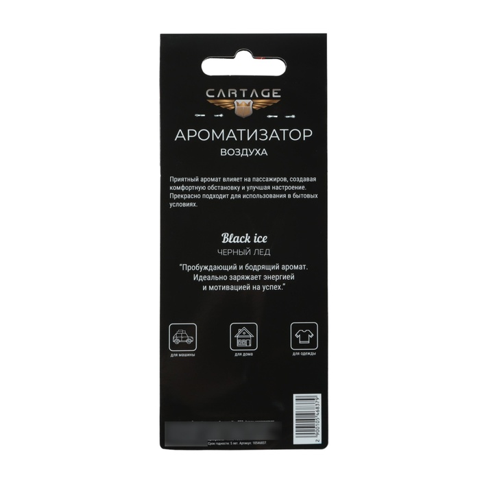 Картонный корпус ароматизатора подчеркивает его легкость и удобство в использовании. Просто повесьте его в удобном для вас месте, например, на зеркале заднего вида в автомобиле или в шкафу, и наслаждайтесь непревзойденным ароматом "Чёрный лёд", который создаст атмосферу свежести и комфорта вокруг вас.