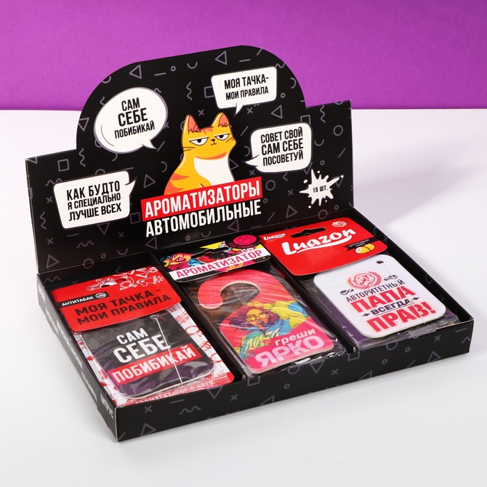 Каждый автомобильный ароматизатор предоставляется в простой, но красивой, подарочной и оригинальной упаковке. Подвесьте ароматизатор в салоне авто или в багажнике, под сиденье.