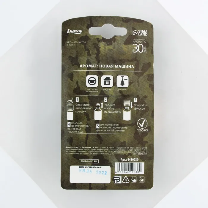 Каждый автомобильный ароматизатор предоставляется в простой, но красивой, подарочной и оригинальной упаковке. Подвесьте ароматизатор в салоне авто или в багажнике, под сиденье.