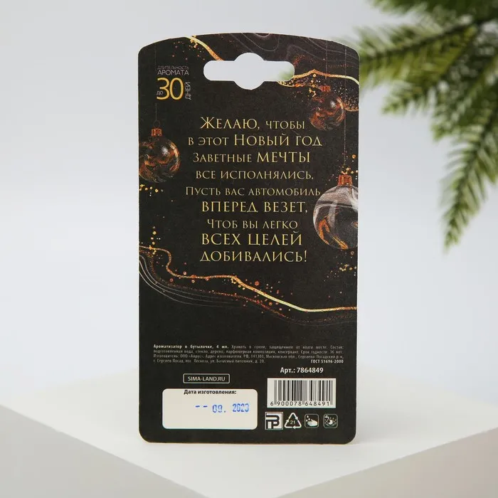 Каждый автомобильный ароматизатор предоставляется в простой, но красивой, подарочной и оригинальной упаковке. Подвесьте ароматизатор в салоне авто или в багажнике, под сиденье. Специальный картон пропитан парфюмерной композицией и источает приятный аромат, который охватит окружающее пространство и будет успокаивать и одновременно помогать оставаться бдительным.