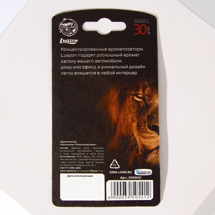 Ароматизатор в машину Luazon «Папа всегда прав», 4 мл, аромат кофе — Характеристики