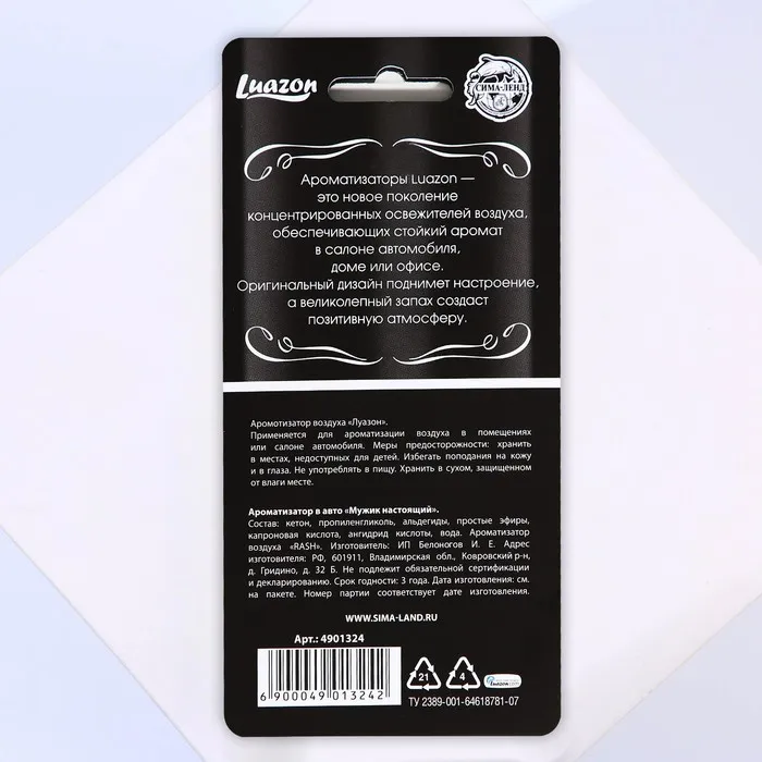Ароматизатор в машину «Мужик настоящий», антитабак — Характеристики