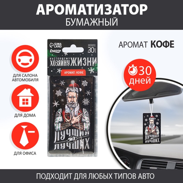 Каждый автомобильный ароматизатор предоставляется в простой, но красивой, подарочной и оригинальной упаковке. Подвесьте ароматизатор в салоне авто или в багажнике, под сиденье. Специальный картон пропитан парфюмерной композицией и источает приятный аромат, который охватит окружающее пространство и будет успокаивать и одновременно помогать оставаться бдительным.