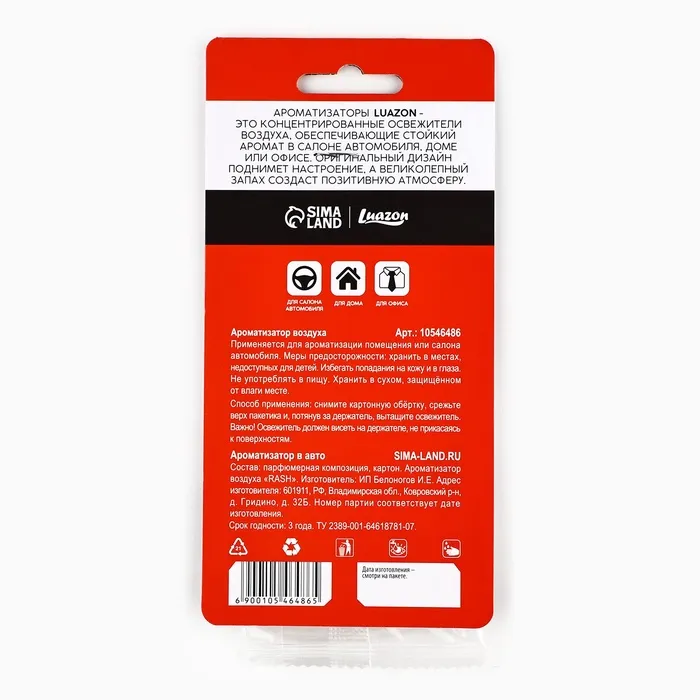 Ароматизатор в машину Luazon «Удачи на дороге», 4 мл, аромат
