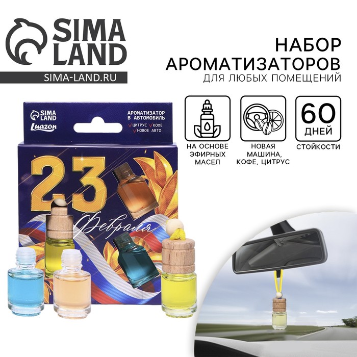 Ароматизатор в машину «23 Февраля», набор 3 шт., аромат цитрус, кофе, новая машина