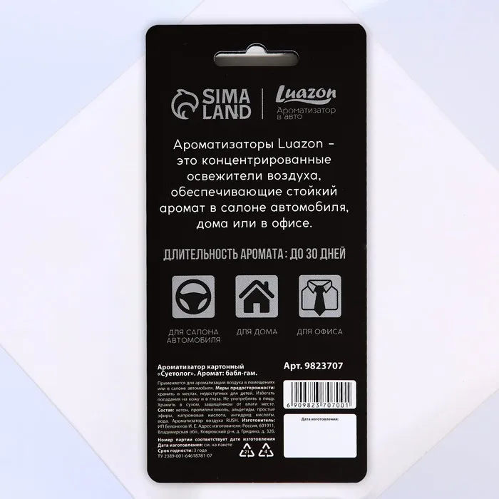 Ароматизатор в машину «Суетолог», аромат бабл-гам — Характеристики