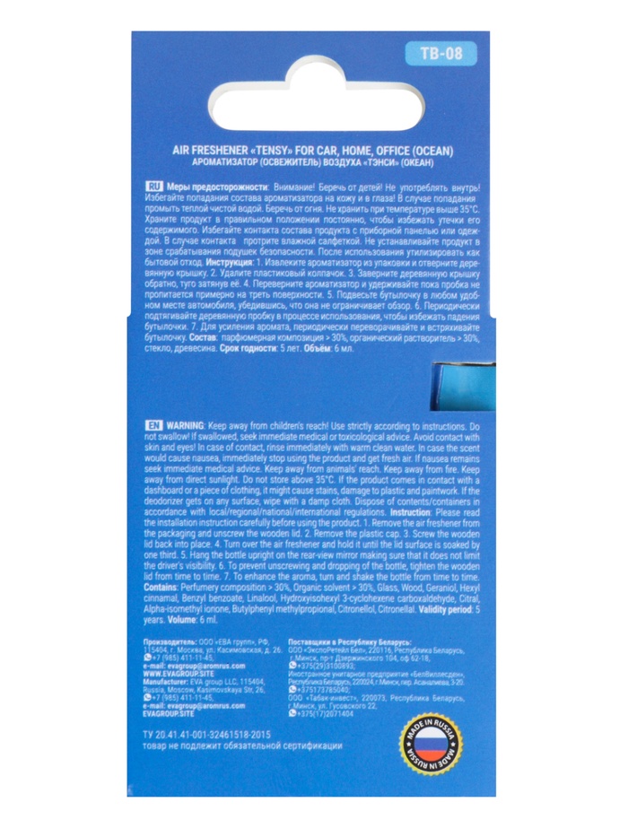 Ароматизатор в машину Tensy, океан, в бутылочке, 6 мл, ТВ-08 — Характеристики