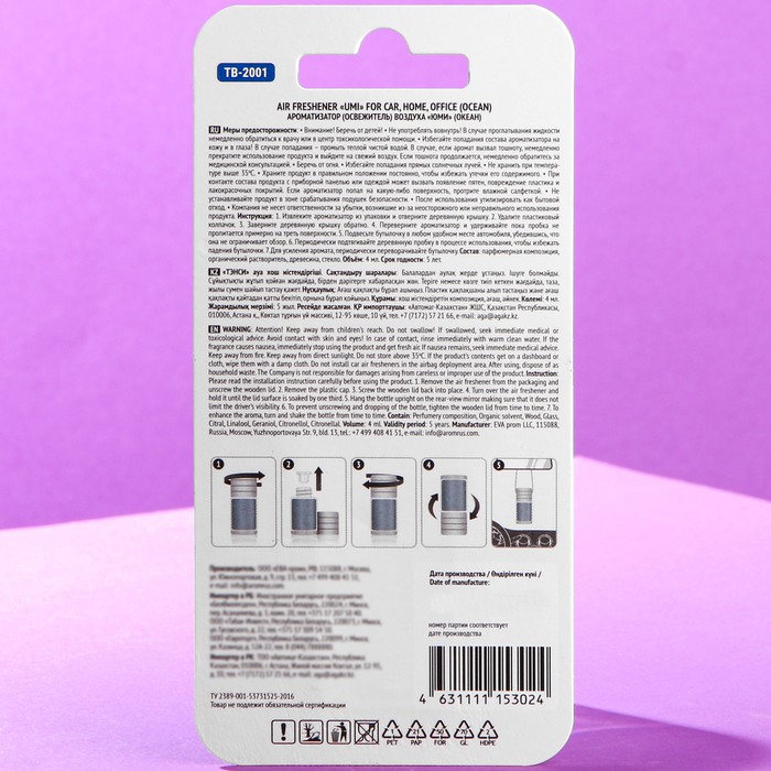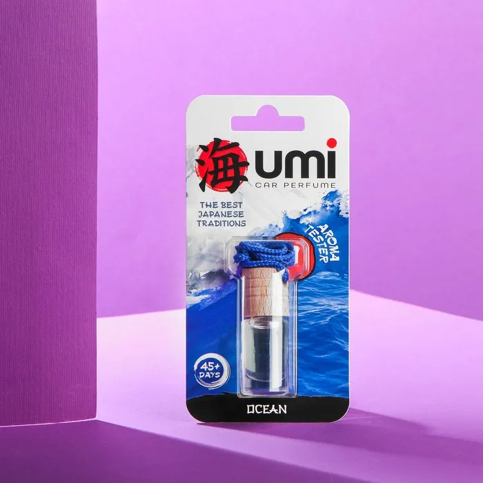Подвесной ароматизатор UMI в стеклянной бутылочке со стильным вощенным шнурком удобно использовать в автомобиле. Благодаря массивной деревянной крышке из натурального бука аромат плавнее и дольше передается в салоне, эффективно устраняя неприятные запахи. Для усиления аромата периодически переворачивайте флакон в закрытом состоянии и слегка пропитывайте крышку ароматической жидкостью. Для тех, кто хочет чувствовать рядом с собой спокойствие, уют и тихий ход времен. Кроме того, морской, океанический аромат создает ощущение чистоты и ухоженности.