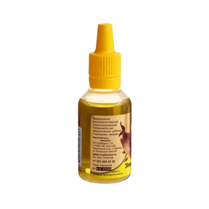 Стойкий, душистый, устойчивый запах придает неотразимый аромат прикормочным смесям и насадочным компонентам. Ароматизаторы бывают как на водной, спиртовой и на масляной основе. Используем натуральные масла (конопляное, анисовое, подсолнечное и т.д.)