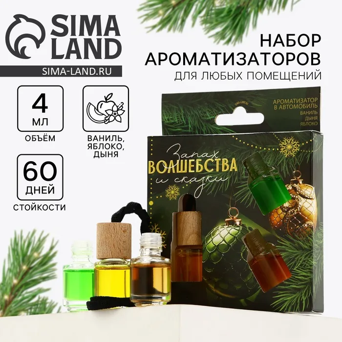 Ароматизаторы в машину новогодние «Запах волшебства и сказки», ваниль, дыня, яблоко, набор 3 шт — Характеристики