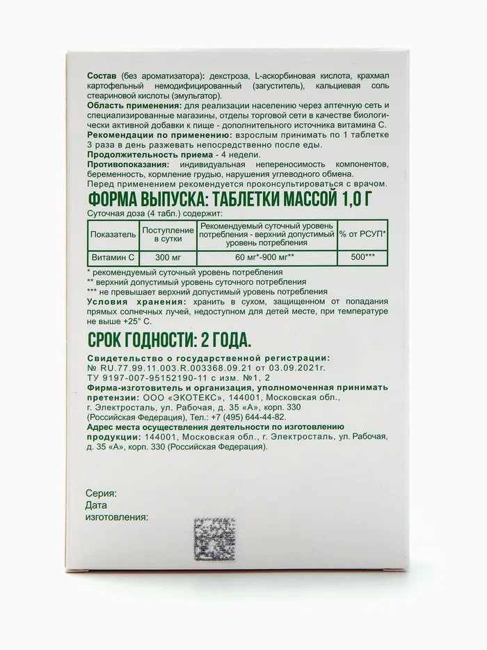 Аскорбиновая кислота с глюкозой "Экотекс" — это биологически активная добавка к пище (БАД), которая содержит витамин C и глюкозу. Витамин C является мощным антиоксидантом, который играет важную роль в поддержании здоровья иммунной системы, укреплении стенок кровеносных сосудов, регуляции образования коллагена и многих других процессах в организме.