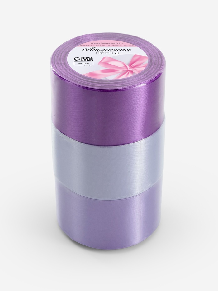 Атласная лента, набор 3 шт., 50 мм, 23±1 м, фиолетовая, сиреневая — Характеристики