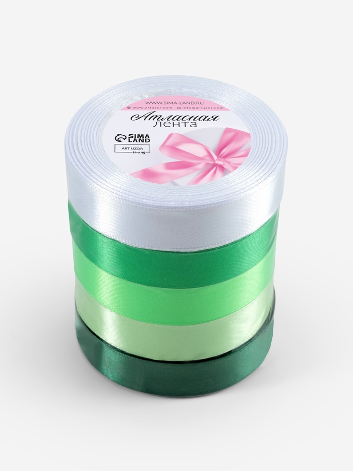 Атласная лента, набор 5 шт., 20 мм, 23±1 м, белая, зелёная — Характеристики