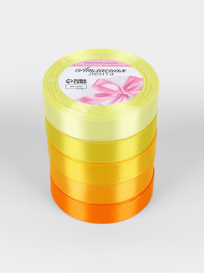 Атласная лента, набор 5 шт., 20 мм, 23±1 м, жёлтый, оранжевый — Характеристики