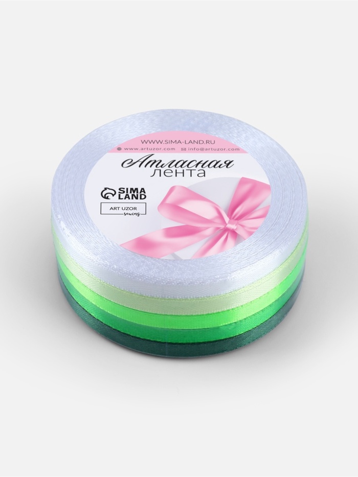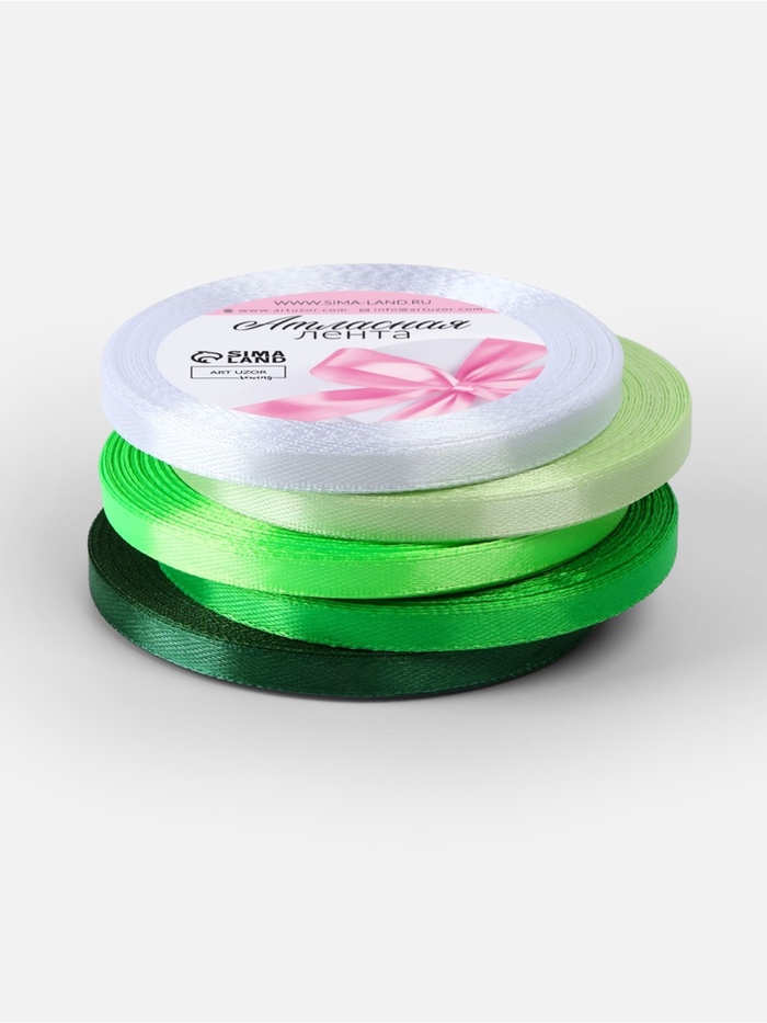 Атласная лента, набор 5 шт., 6 мм, 23±1 м, белая, зелёная — Характеристики