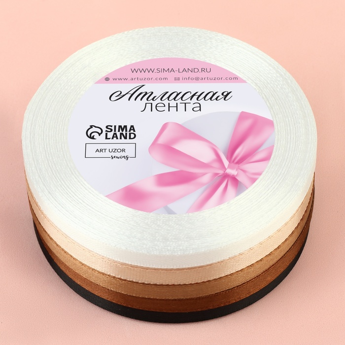 Атласная лента, набор 5 шт., 6 мм, 23±1 м, бежевый, коричневый — Характеристики