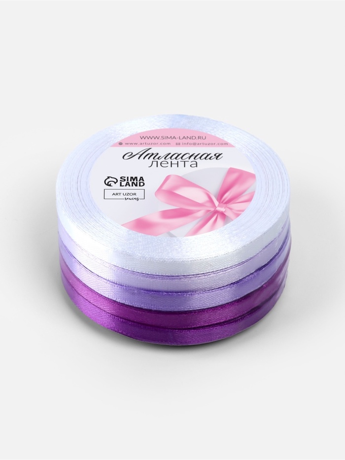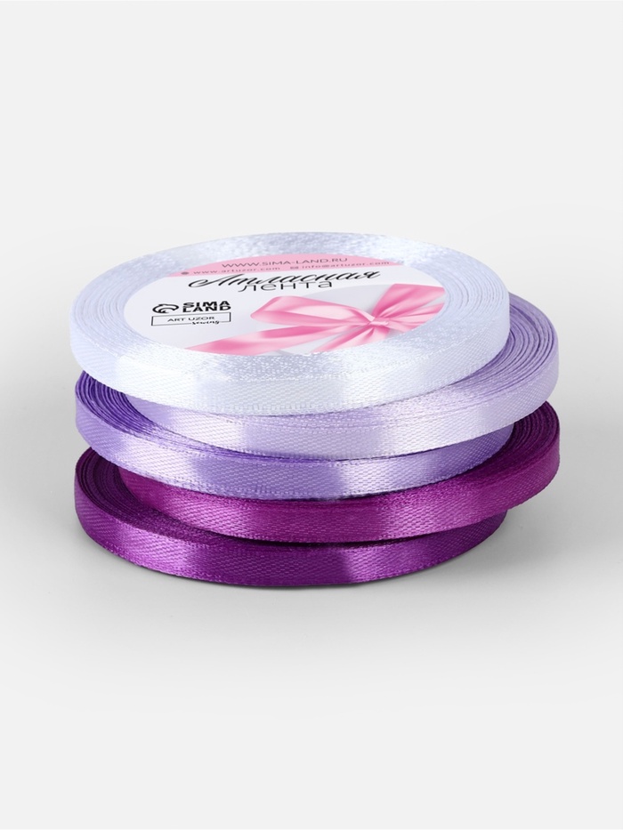 Атласная лента, набор 5 шт., 6 мм, 23±1 м, фиолетовая, сиреневая — Характеристики