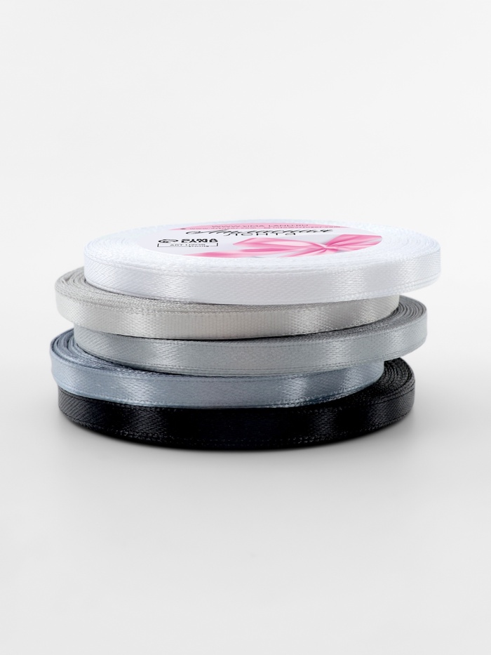 Атласная лента, набор 5 шт., 6 мм, 23±1 м, серая, чёрная — Характеристики