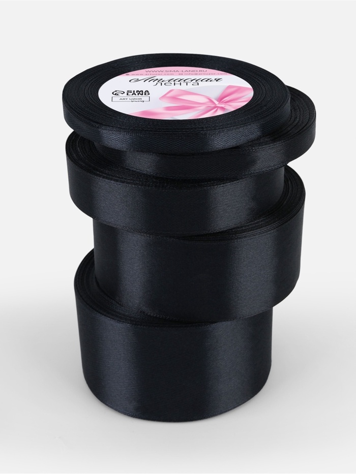 Атласная лента, набор 5 шт., 6/10/20/40/50 мм, 23±1 м, чёрная №39 — Характеристики