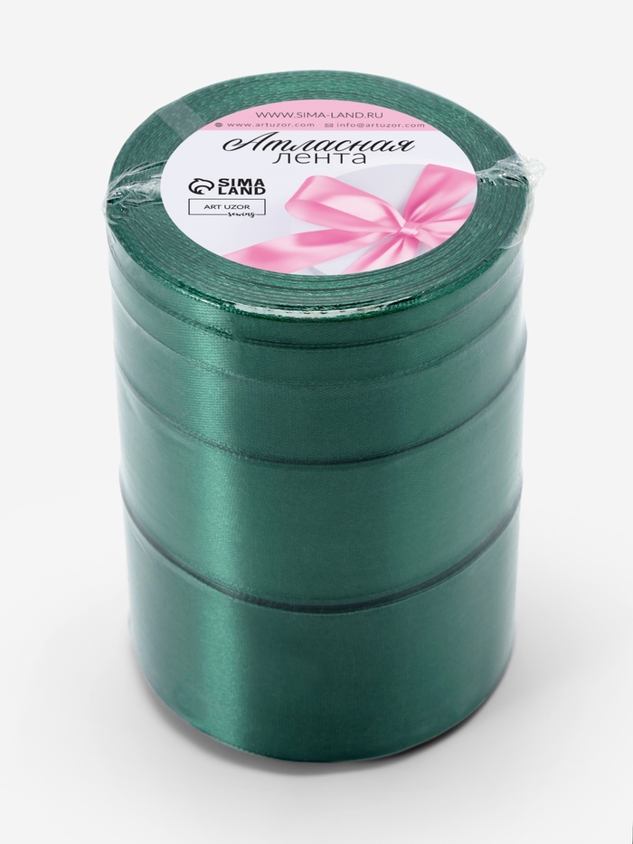 Атласная лента, набор 5 шт., 6/10/20/40/50 мм, 23±1 м, изумрудная №128 — Характеристики