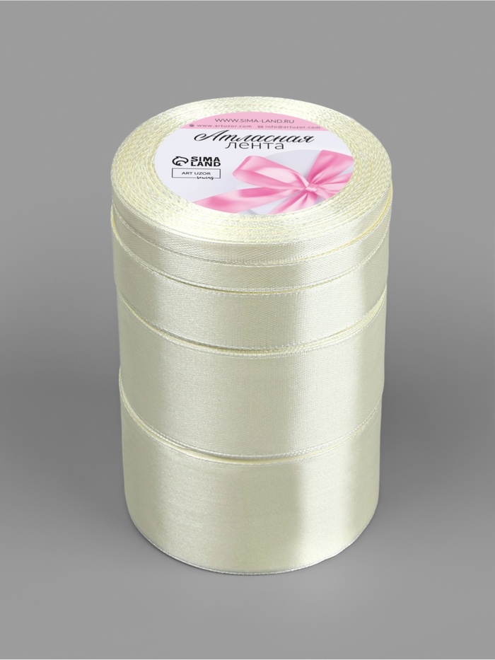Атласная лента, набор 5 шт., 6/10/20/40/50 мм, 23±1 м, сливочная №02 — Характеристики