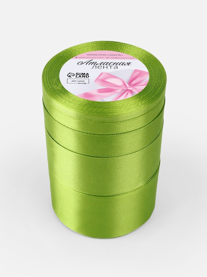 Атласная лента, набор 5 шт., 6/10/20/40/50 мм, 23±1 м, светло-зелёная №184 — Характеристики