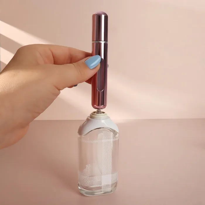 Атомайзер для парфюма поможет носить любимый аромат с собой. Чтобы перелить духи, cнимите распылитель с флакона, наденьте атомайзер и несколько раз надавите, пока ёмкость не наполнится. Аксессуар надёжно сохранит ваш парфюм от вытекания.