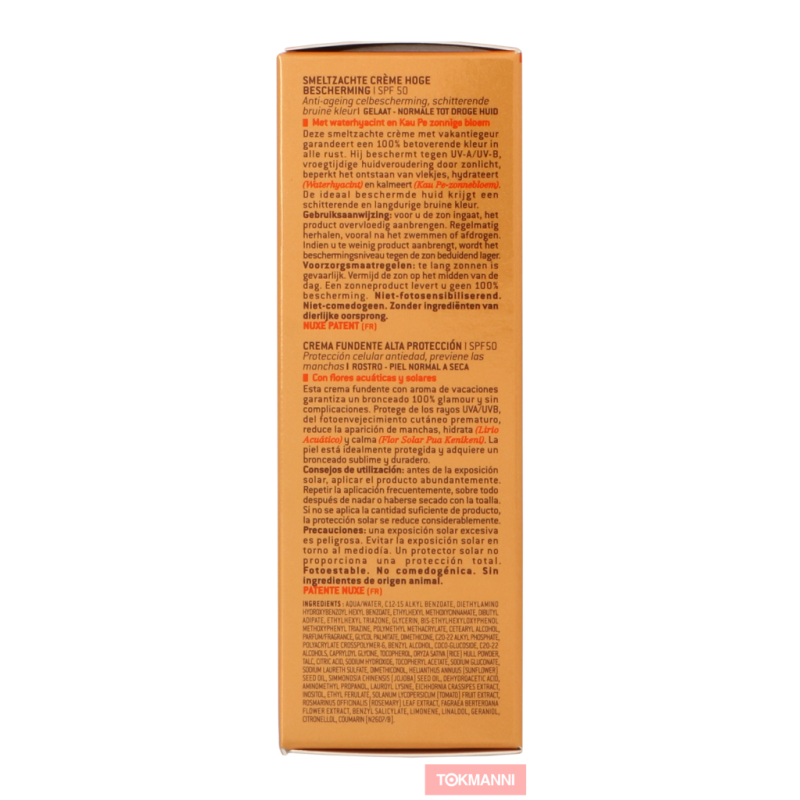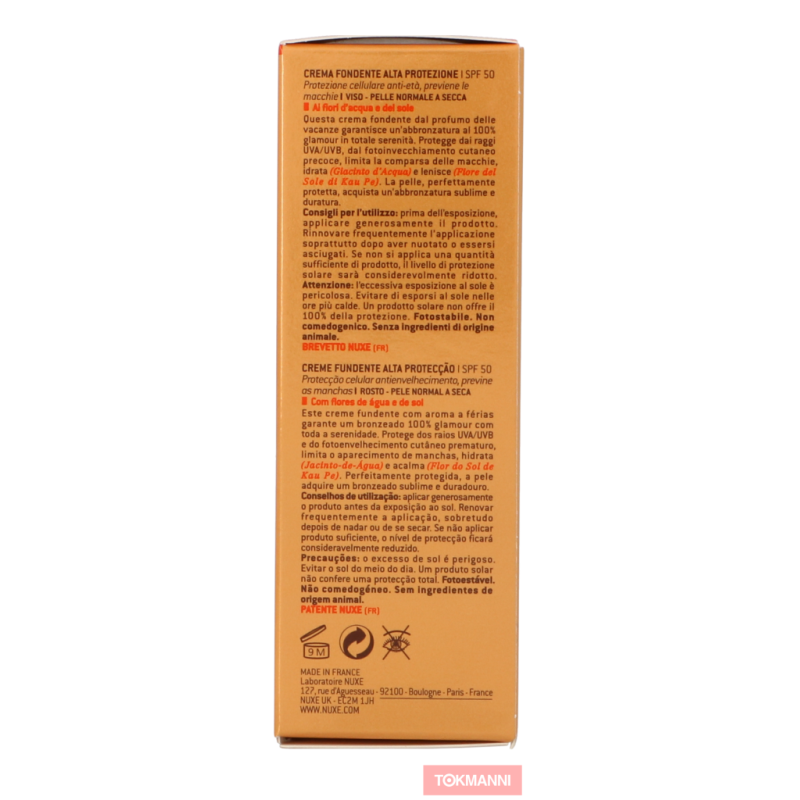 Солнцезащитный крем Nuxe SPF50 создан для надежной защиты нормальной и сухой кожи от вредного воздействия ультрафиолетовых лучей. Он обеспечивает высокую степень защиты, сохраняя вашу кожу здоровой и увлажненной даже в самые солнечные дни.