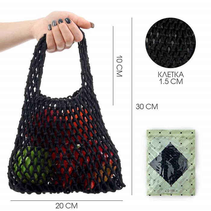 Авоська плетёная, маленькая, клетка 1.5 см, чёрная — Характеристики