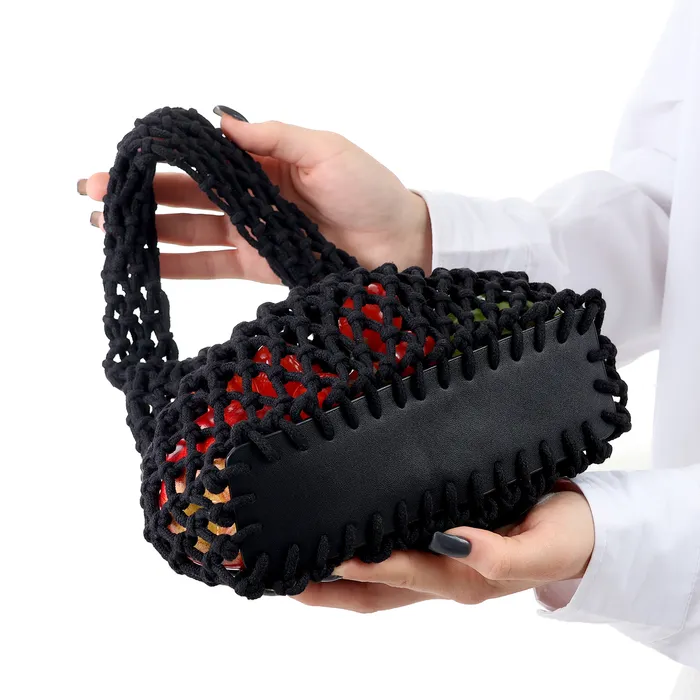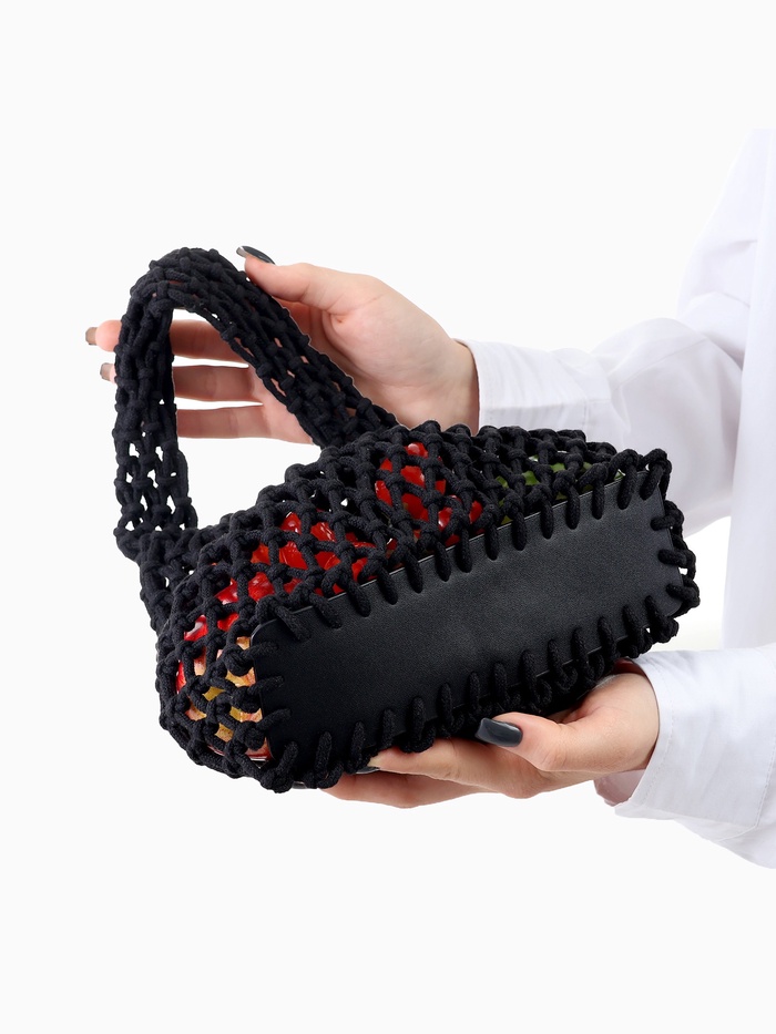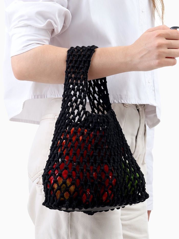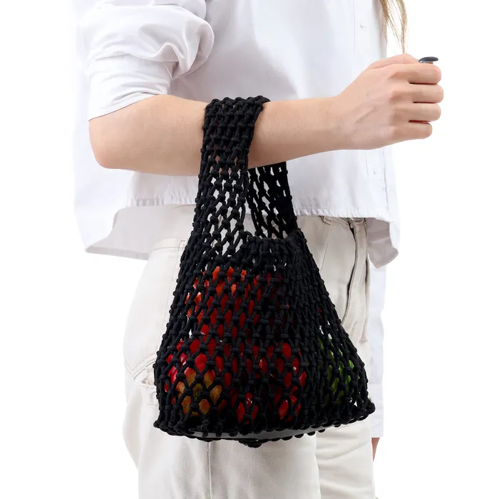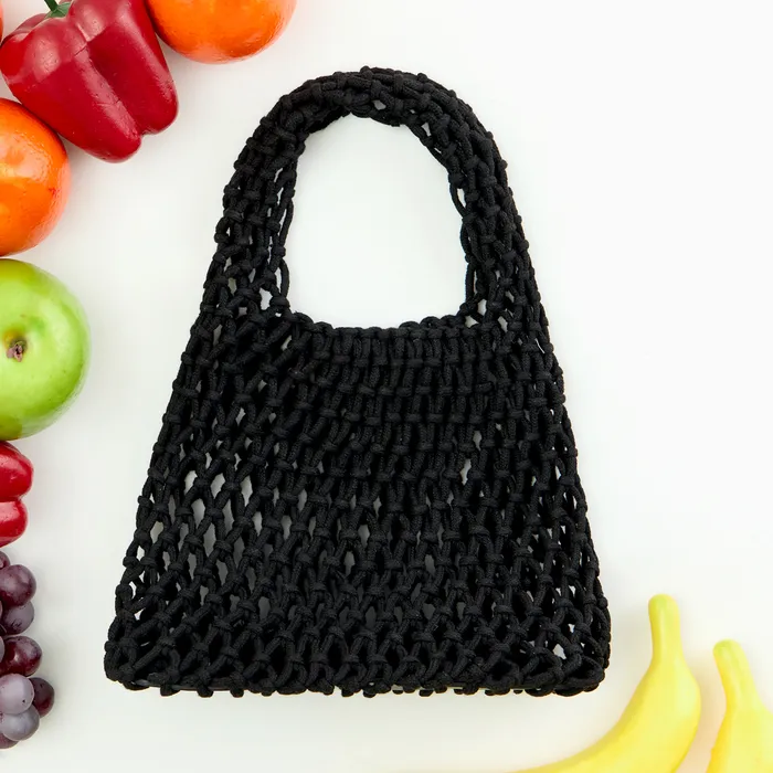 Авоська плетёная, маленькая, клетка 1.5 см, чёрная