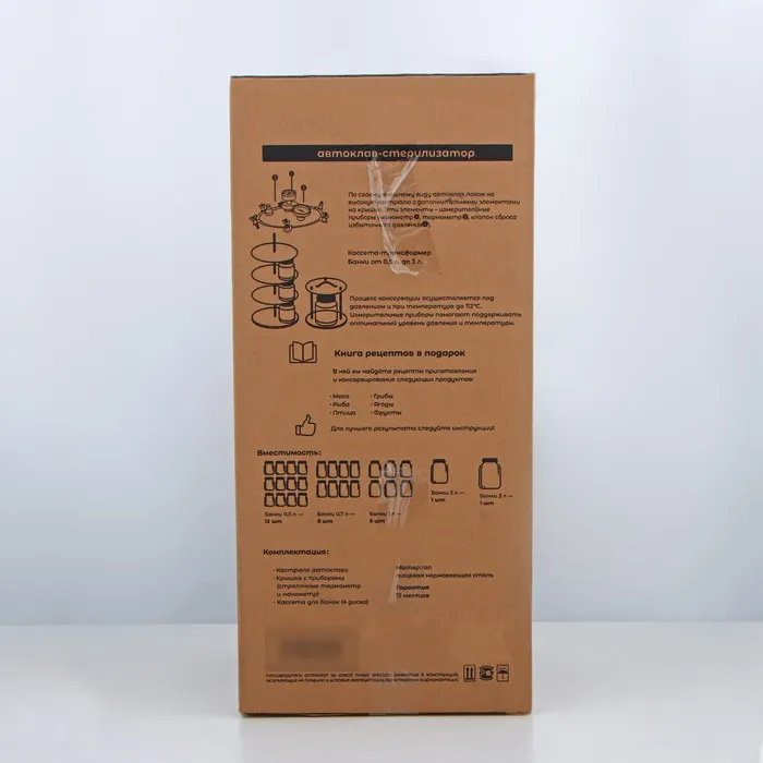 В автоклаве вы можете приготовить вкусную тушёнку из курицы, гуся, утки, а также рыбные консервы, различные овощные заготовки, варенье и другие блюда, которые будут радовать вас и ваших близких круглый год!